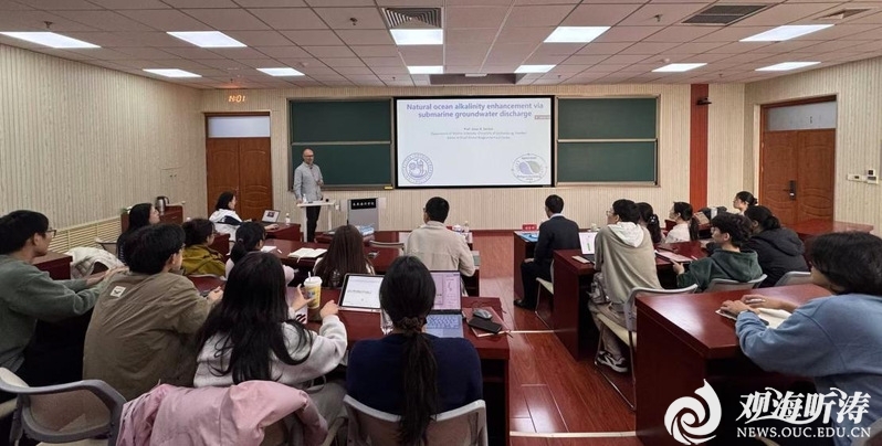 本站讯 11月6日,应未来海洋学院院长李建平教授、学院导师许博超教授联合邀请,美国地球物理学会(AGU)会士、瑞典哥德堡大学Isaac Santos教授做客“未来海洋讲坛”,作了题为“Natural Ocean Alkalinity Enhancement via Submarine Groundwater Discharge(海底地下水排放增强海洋碱度)”的学术讲座。讲座由赵世彬老师主持,未来海洋学院学员和化学化工学院师生在内的1.7万余人,通过线上和线下相结合的方式听取讲座。