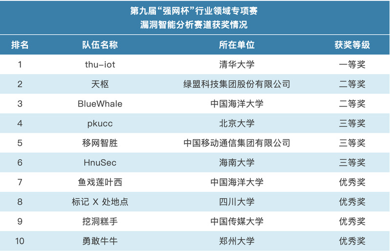 第九届 | 漏洞智能分析赛道 | 全国二等奖、全国优秀奖 奖金总计55000元 |