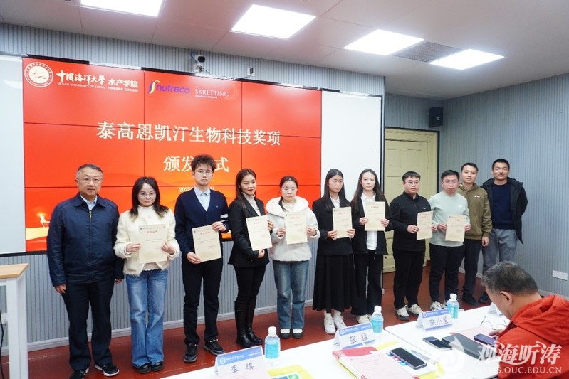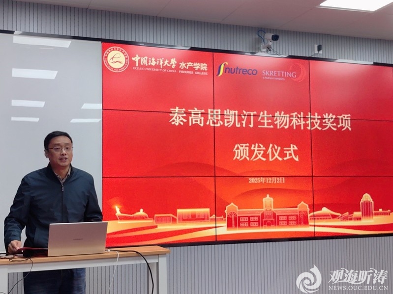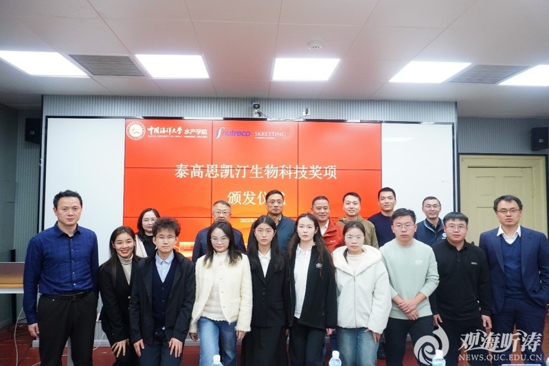 本站讯 12月2日,“泰高思凯汀生物科技奖项”颁发仪式暨校友经验分享会在鱼山校区铭史楼302会议室举行。泰高思凯汀销售总监陈小星、水产学院党委书记张猛、名誉院长李琪等领导嘉宾出席仪式。
