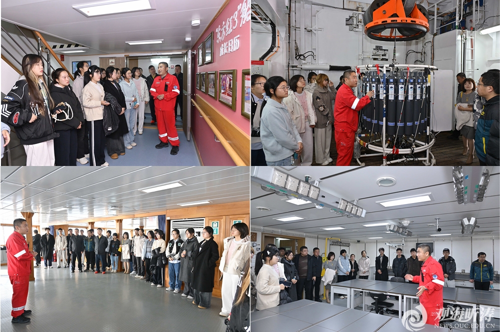 登船后,实验室总负责人为同学们系统介绍了“东方红”系列科考船的发展历程,以及“东方红3”船的主要技术特点。同学们依次参观了驾驶舱、系列科研实验室以及船员生活区,近距离了解现代化科考船的工作环境与运行体系。