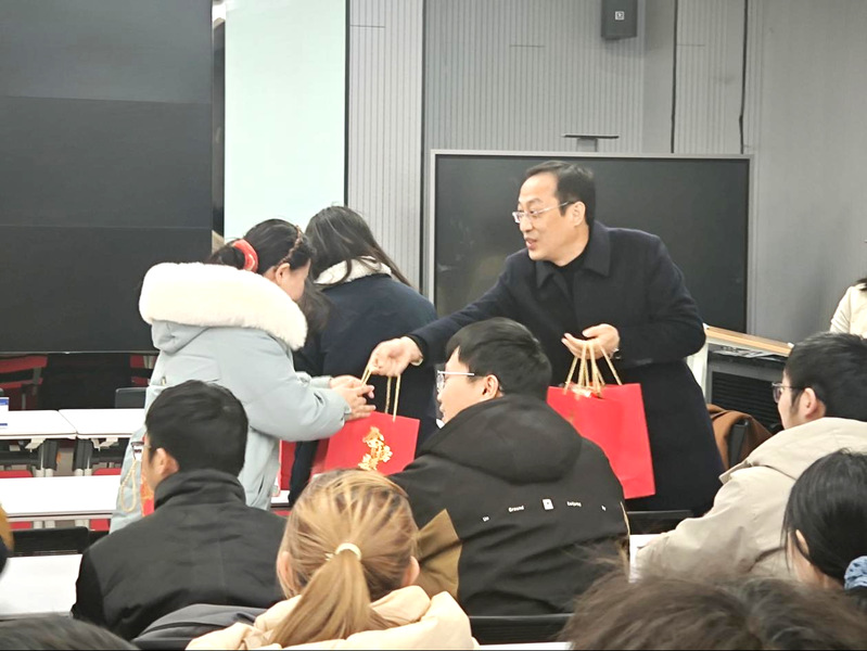 活动最后,与会老师共同为考研学子发放了精心准备的“考研助力礼包”。礼包中各类寓意美好的物品,承载着学院师生深厚的情谊与祝愿:愿大家心想事“橙”、“苹”稳上岸,以笔下星辰,照亮前程,凭奋斗汗水,浇灌硕果。