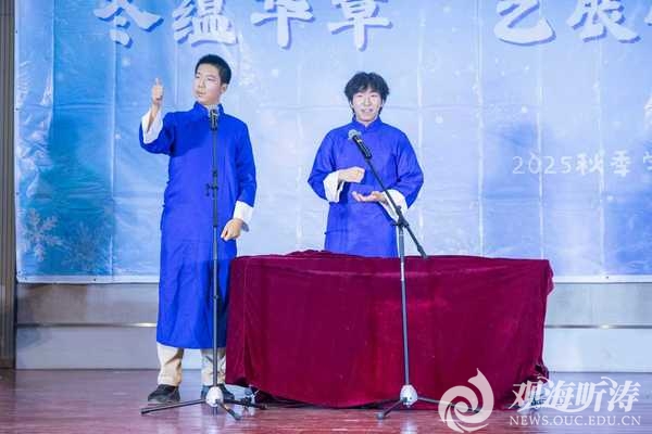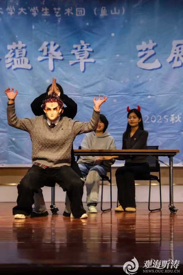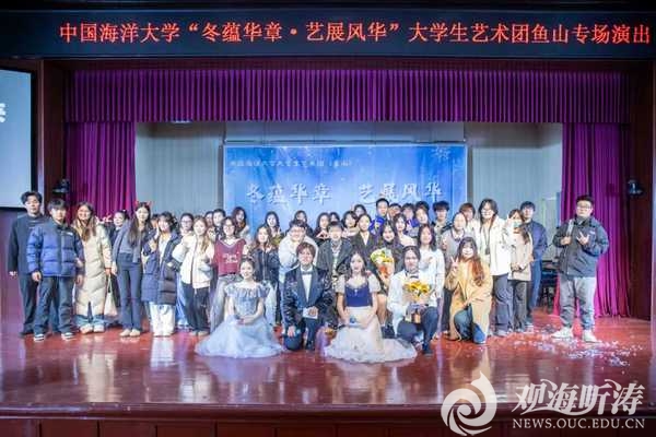 本站讯 朔风拂过枝桠,弹奏冬日的交响。青春在五线谱上舞动,倾泻希望的乐章。2025年12月7日,“冬蕴华章,艺展风华”大学生艺术团鱼山专场演出在鱼山校区六二礼堂拉开序幕。本场演出包括歌曲、器乐、舞蹈、相声、小品等多种形式,带来视觉与听觉的双重盛宴。