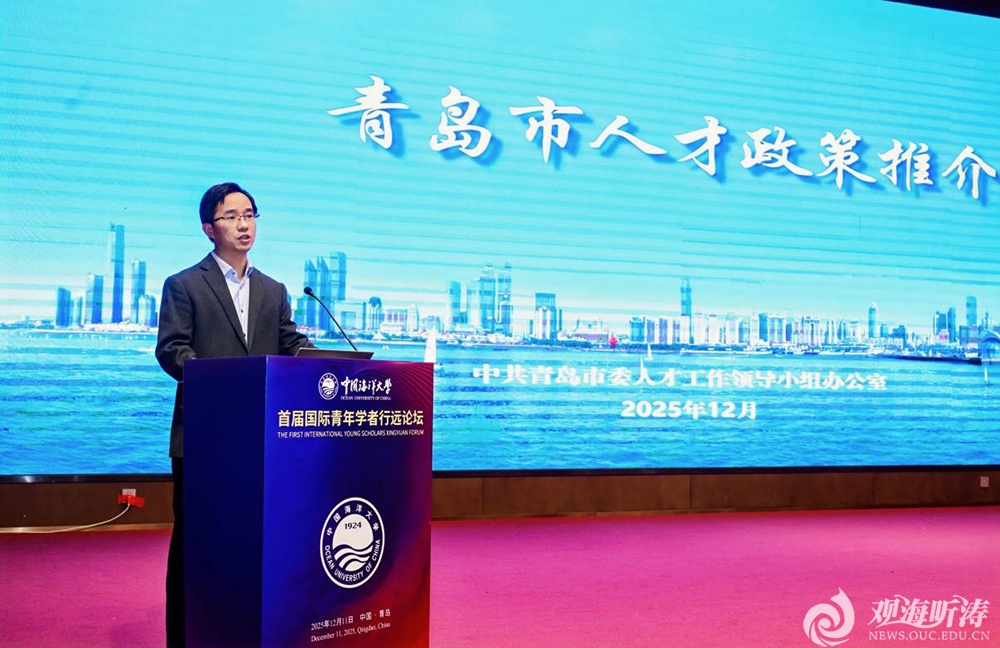 青岛市人才发展促进中心副主任严立洪作青岛市人才政策推介,向参会学者们系统介绍了青岛市最新人才政策。中国海洋大学党委教师工作部部长、人事处处长毛相朝作学校人才政策推介,从人才引育体系、人才晋升与成长通道、支持保障等方面系统解读了学校的人才引进政策和人才发展环境。