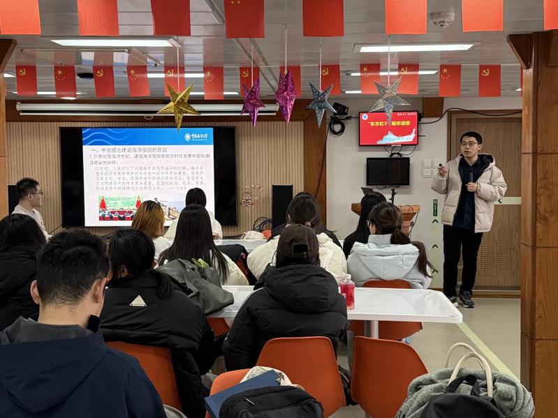 本站讯 12月12日下午,为深入学习贯彻党的二十届四中全会精神,引导广大青年学子坚定理想信念,积极投身中国式现代化与海洋强国建设的宏伟实践,开云电竞网址医药学院在“东方红3”船上举行“我的海药梦想”主题团日活动,活动由辅导员姜萌昕主持。