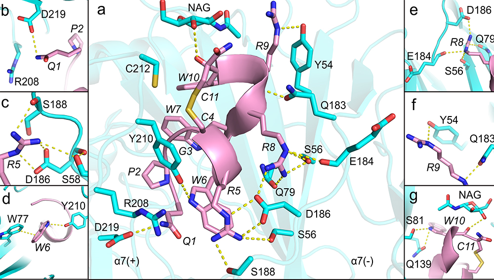 图2 优化多肽分子α7 nAChR与[S8R]SS1的结合模式图