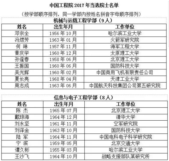 11月27日上午,中国工程院正式公布了2017年院士增选结果,最终选举产