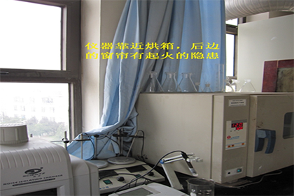 (8)仪器靠近烘箱,后边窗帘有起火隐患