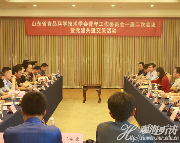 本站讯 9月1日下午,食品科学与工程学院教师第一党支部(以下简称学院教师一支部)与山东省食品科学技术学会党支部(以下简称食品学会支部)于青岛黄海饭店会议室举办党建共建交流活动。学院党委书记辛华龙,学院教师一支部书记林洪,食品学会支部书记和法涛,学院教师一支部和食品学会支部的党员代表参加党建共建活动。