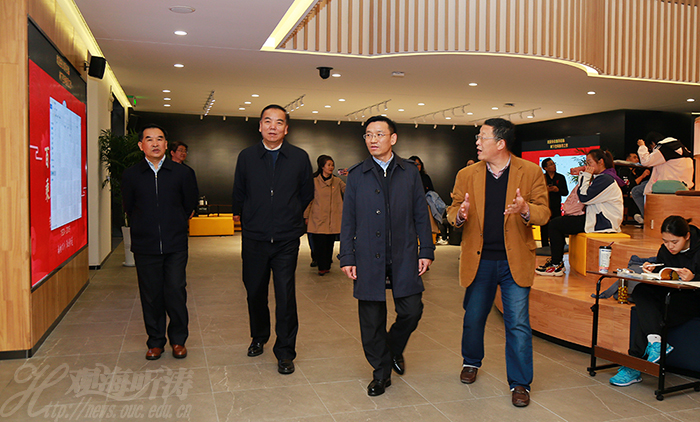 宋德民、杜向民一行在田辉陪同下考察崂山校区“树下空间”研讨型教室