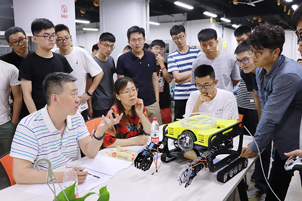 系里海洋航行器、智能车、机器人等师生科技竞赛团队的指导教师中,党员占七成以上。“为了决赛,我们放弃了暑假。宋老师也跟我们一起泡实验室。实验陷入僵局,他会及时点拨;碰到知识盲区,他会适时启发;我们懈怠,他又即时鞭策。” 今年8月,机械设计制造及其自动化2016级吕成所在的宋大雷教授师生团队,在第八届全国海洋航行器设计与制作大赛上一举夺得特等奖。