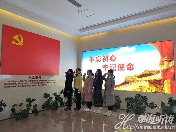 参观结束后,全体党员在鲜艳的中国共产党党旗下,庄严举起右手,重温入党誓词,庄严的誓词回荡在宣誓殿堂里,更铭记在每一个党员心中,指引着每一名党员不忘初心、牢记使命、砥砺前行。