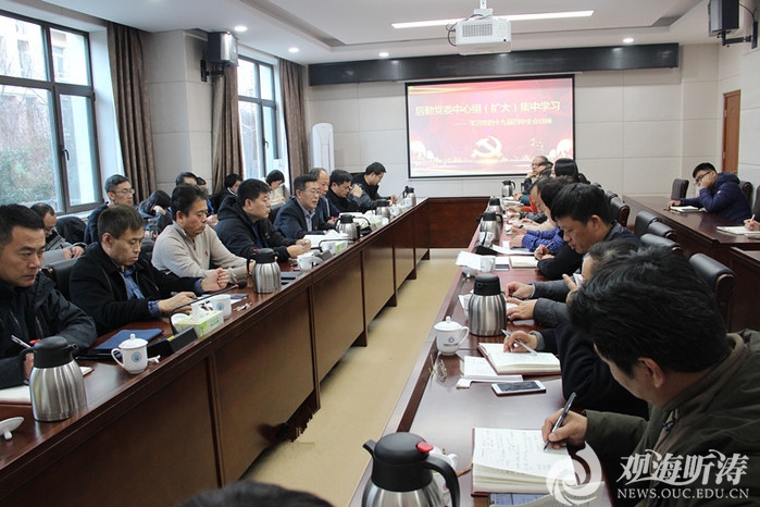 本站讯 11月28日,后勤党委中心组(扩大)集中学习党的十九届四中全会公报精神,后勤党委书记崔越峰主持会议。