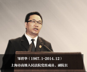 邹碧华生前是上海市高级人民法院副院长,投身司法事业26年。2014年12月,他突发心脏病经抢救无效因公殉职,终年47岁。邹碧华去世后,中宣部追授其“时代楷模”荣誉称号,最高人民法院追授其“全国模范法官”荣誉称号。他的先进事迹被媒体广泛报道,在全社会引起强烈反响。