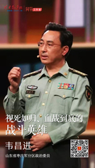 韦昌进(1965——),江苏南京人。1985年加入中国共产党。1983年10月参加中国人民解放军,历任连队指导员、军校教员、人武部政委、山东省枣庄军分区政治委员等职务。他参加边境自卫还击作战,在弹片击中左眼、穿透右胸,全身22处负伤的情况下,高呼“为了祖国,为了胜利,向我开炮”,引导炮兵打退敌军8次反扑,独自坚守战位11个小时。从战场归来后,他义务作事迹报告和宣讲辅导500余场次,用自身经历弘扬主旋律、传递正能量。荣获“...