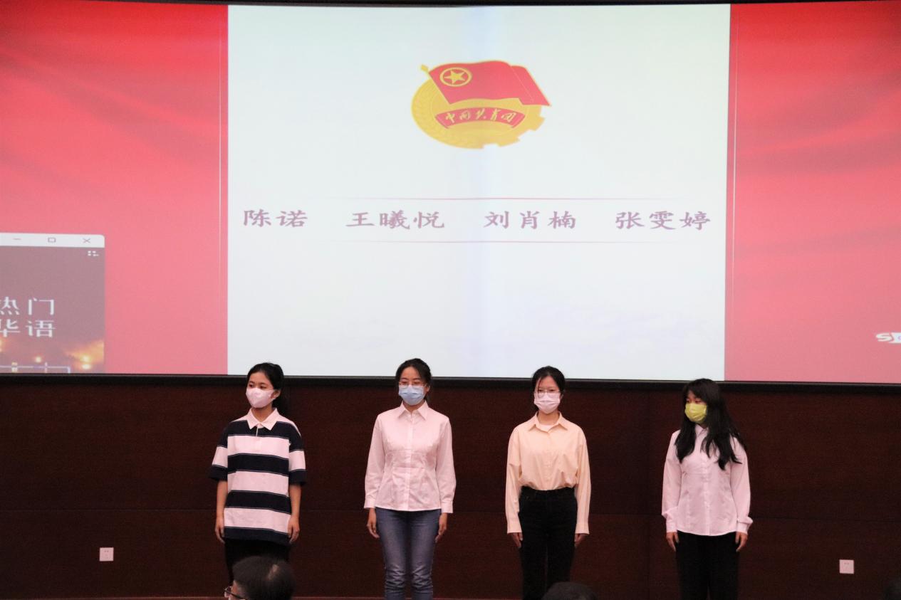 管理先锋、团员代表崔玉虎同学进行发言,讲述了自己努力学习、拼搏奋斗、追求梦想的相关经历及感受。教师代表为新发展团员佩戴团徽,新入团同学进行入团宣誓,崔玉虎同学带领在场全体人员重温入团誓词。