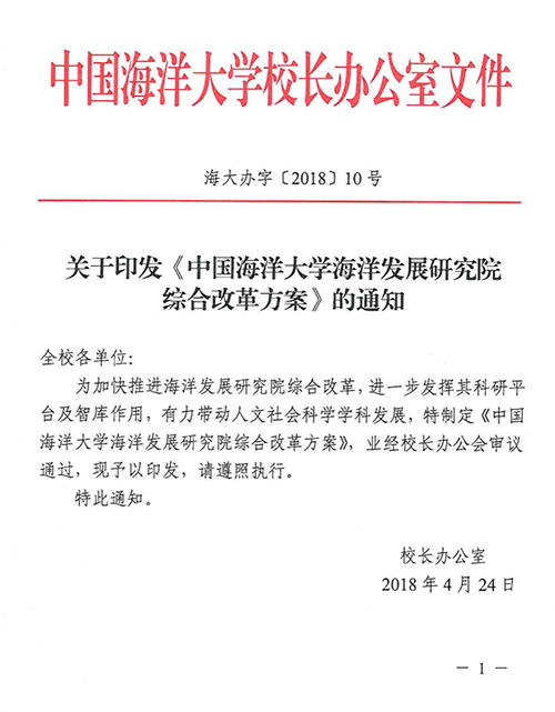 2018年4月,学校正式启动海洋发展研究院综合改革