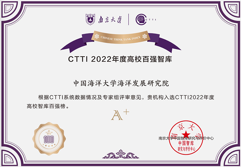 海洋发展研究院2022年入选中国智库索引(CTTI)高校智库百强榜(A+级)
