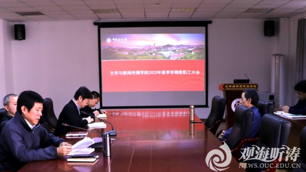 本站讯 3月9日下午,文学与新闻传播学院(以下简称“文新学院”)在文新楼学术报告厅(322室)举行2023年春季学期教职工大会,专题传达学习学校第十一次党代会精神。学院党委书记刘健主持会议。