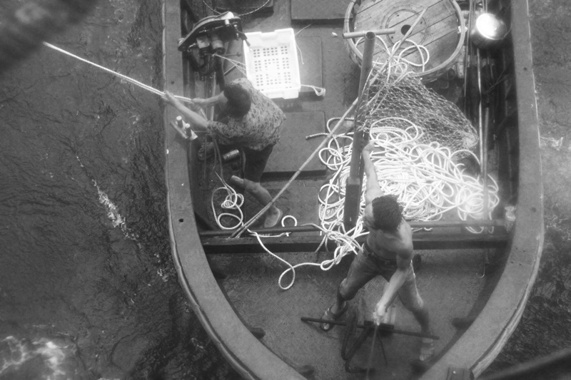 渔民们尽全力让船保持稳定。