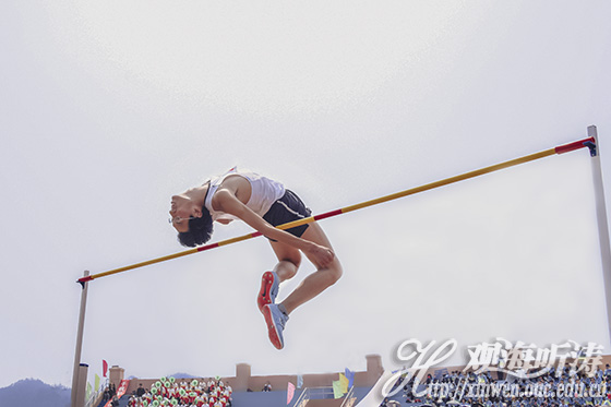 飞越栏杆是跳跃的力量背跃的瞬间永远定格蓝天的永恒全力奔跑梦想踏在飞驰的脚尖驰骋赛道英姿飒
