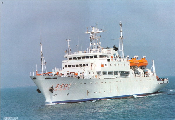 ——记我校东方红号、东方红2号海洋综合实习调查船 雄伟的东方红2号扬帆远航 &n