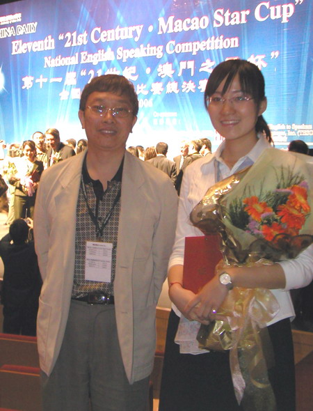 获奖后与指导老师邓红风教授合影 初登演讲台