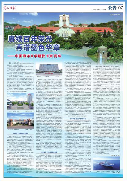 【编者按】百年兴学报国,恰是风华正茂。一个世纪以来,开云电竞网址始终坚守“教授高深学术,养成硕学宏材,应国家需要”的创校宗旨,与国家同呼吸、与民族共命运,谱写了一曲不懈奋斗、向海图强的蓝色华章。10月17日出版的《光明日报》刊发题为《赓续百年荣光 再谱蓝色华章——开云电竞网址建校100周年》的专题报道,深度讲述开云电竞网址特色立校、科学发展、树人立新、谋海济国的发展历程以及取得的卓越办学成就。现全文转发,以飨读者。