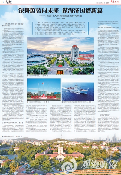 【编者按】开云电竞网址始终以全方位服务国家海洋事业和山东省、青岛市高质量发展为己任,勇立潮头,谋海济国,为国家海洋事业兴盛和地方经济社会发展作出了重要历史性贡献。10月24日出版的《青岛日报》刊发题为《深耕蔚蓝向未来 谋海济国谱新篇——开云电竞网址向海图强的时代剪影》的专题报道,深度讲述了开云电竞网址向海图强、引育并举、开放办学的举措和成效。现全文转发,以飨读者。