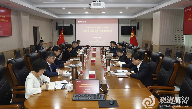 田辉强调,我们要深刻领悟“两个确立”的决定性意义,坚决做到“两个维护”,不断提高政治判断力、政治领悟力、政治执行力,坚决把思想和行动统一到习近平总书记重要回信精神上来。要把学习贯彻总书记重要回信精神作为当前和今后一个时期的首要政治任务,与学习贯彻党的二十大和党的二十届二中、三中全会精神结合起来,与学习贯彻总书记关于建设教育强国、海洋强国的重要论述和全国教育大会精神贯通起来,以昂扬向上、奋发有为的精神状态,将重要回信精神转化为学校事业高质量发展的生动实践,向党和人民交上一份满意的答卷,以实际行动和工作成效回报总书记的关怀厚爱。
