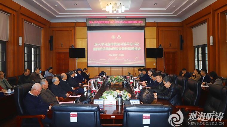 本站讯 11月6日,学校在鱼山校区胜利楼会议厅召开深入学习宣传贯彻习近平总书记重要回信精神座谈会暨校情通报会。校长张峻峰,学校老领导冯瑞龙、吴德星、王滋然、侯家龙、王庆仁、翟世奎等出席座谈会。