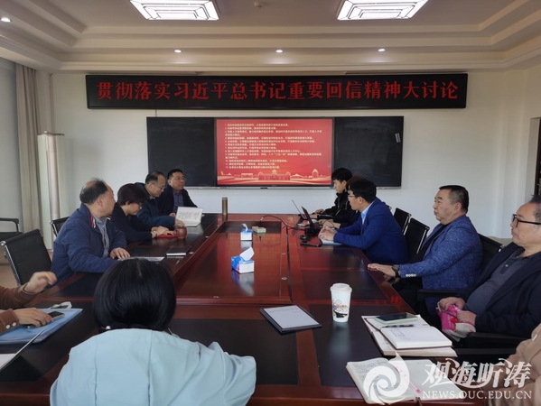 张丽带领与会人员针对回信精神中关于教学、科研、对外合作交流等方面深入展开讨论,与会人员积极参与讨论,贡献自己的宝贵意见,推动学院贯彻落实回信精神工作的顺利进行。