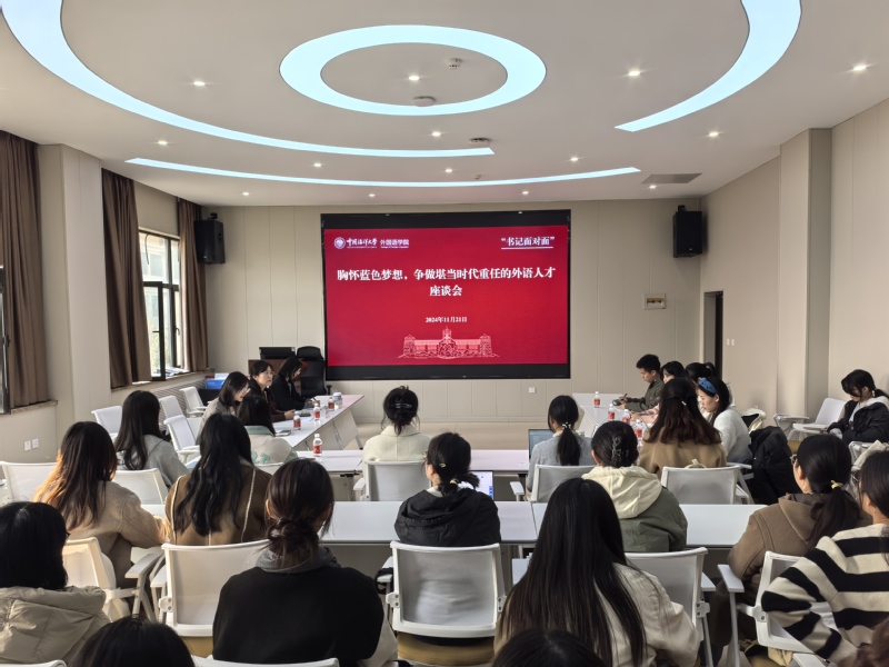 本站讯 11月21日下午,外国语学院召开“胸怀蓝色梦想,争做堪当时代重任的外语人才”座谈会,党委书记许玲玲走进本科生第一党支部,与学生党员面对面深入开展座谈交流。党委副书记戴淑妮参加座谈会,座谈会由学院专职组织员、团委副书记高扬主持。