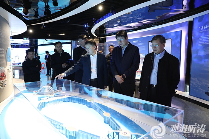会前,魏志强、王厚杰一行参观了山东海洋集团智慧展厅,详细了解了集团发展历程、产业布局、重大项目等情况。