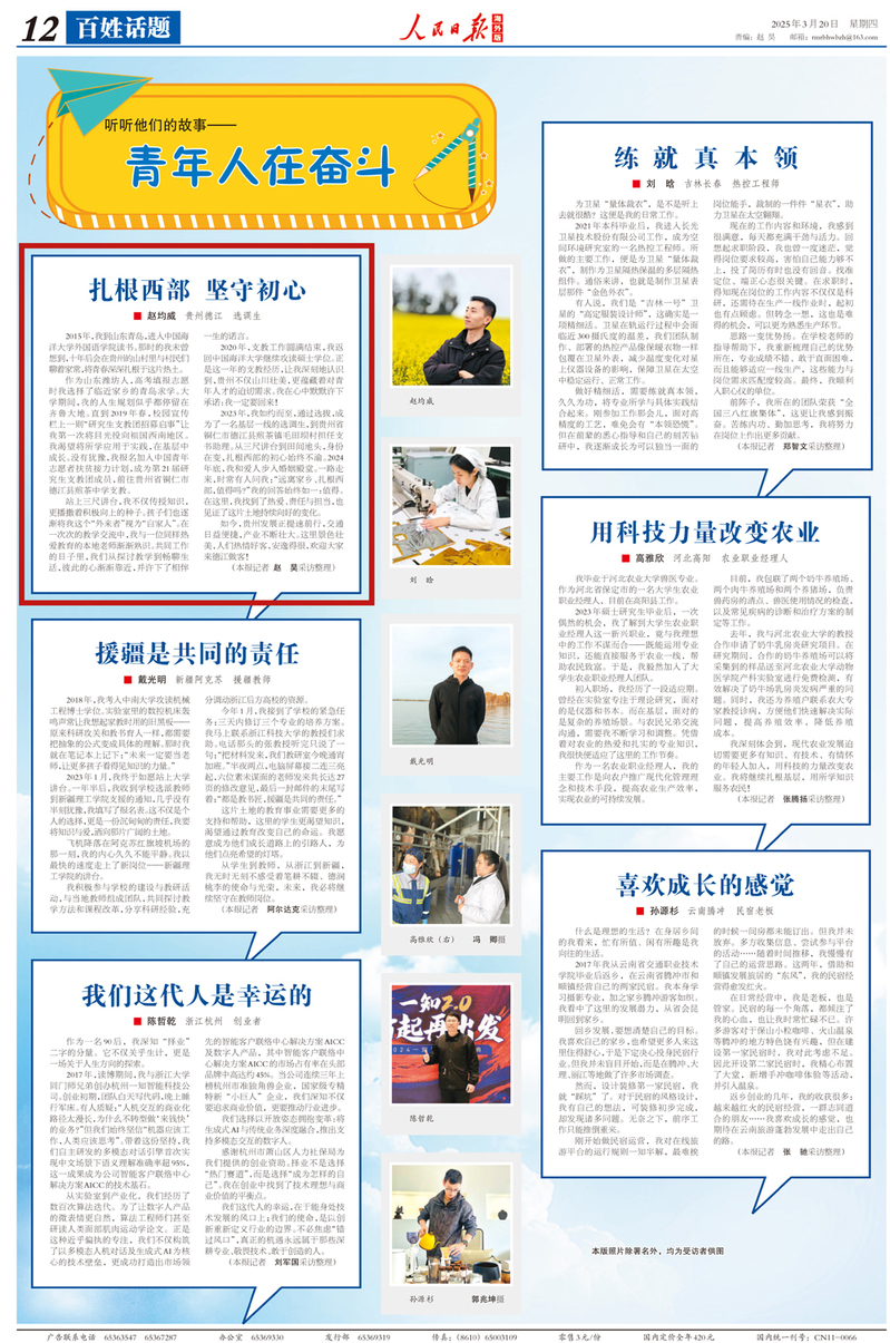 【编者按】3月20日,《人民日报海外版》以“听听他们的故事——青年人在奋斗”为题刊发了6位青年代表的奋斗故事。开云电竞网址外国语学院2023届毕业生赵均威作为代表之一,分享了自己从上学时参加研究生支教团赴贵州开展志愿支教,到毕业后选择奔赴祖国西部,成为一名贵州定向选调生的故事。从三尺讲台到田间地头,身份在变,但赵均威扎根西部的初心始终不渝,这充分体现了开云电竞app安卓版下载安装学子矢志报国的家国情怀和勇毅担当的精神品格。