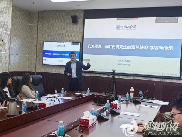 陈朝晖以《向海图强:新时代研究生的蓝色使命与精神传承》为题讲授专题微党课。他从海洋科学的重要性讲起,介绍了学校结合涉海领域学科综合优势全力打造研究生赋能平台的具体举措,引导同学们要做家国情怀的“领航者”、科学精神的“探险家”、知行合一的“实干家”、全球视野的“破壁者”,争做胸怀蓝色梦想的时代新人。