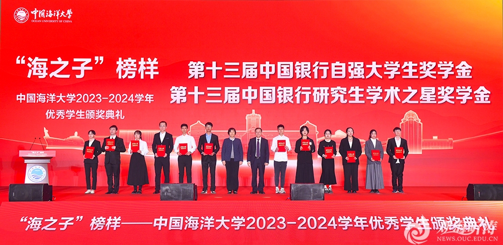 校设奖学金获得者代表、海洋与大气学院葛子涵同学,社会捐赠奖学金获得者代表、文学与新闻传播学院韩梦洁同学,先进班集体标兵获奖班级代表、信息科学与工程学部王骏杰、王小涵同学,海洋织绿创新创业团队成员张彦浩同学,文苑奖学金获奖代表、食品科学与工程学院梁钰同学先后分享了自己的成长感悟与求学故事。