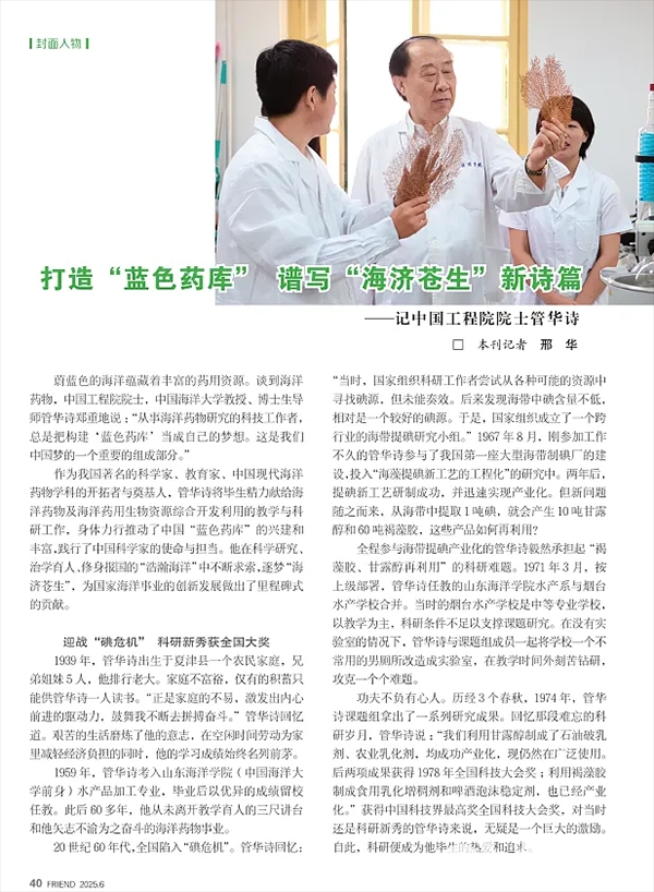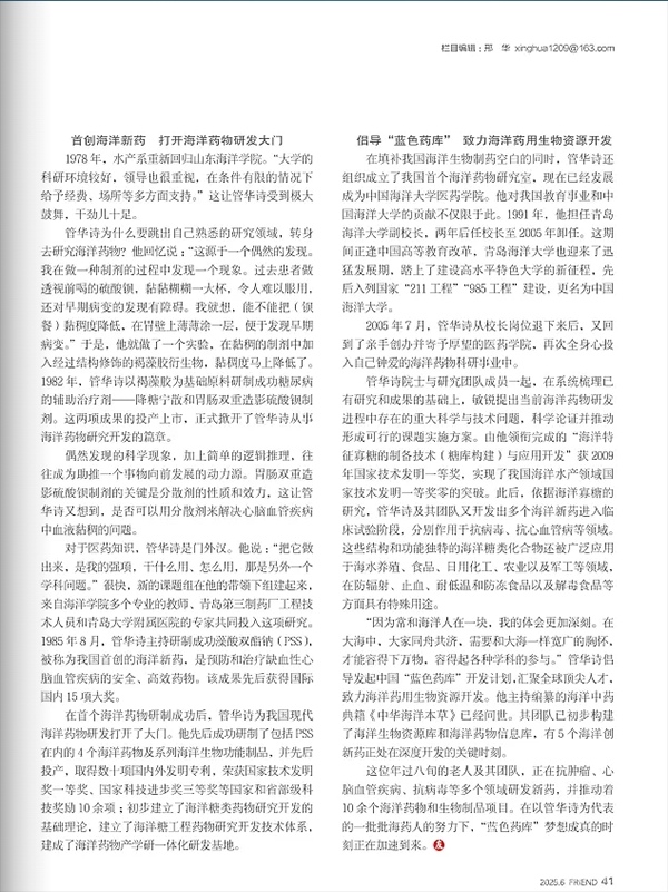 【党员干部之友】管华诗:打造“蓝色药库”谱写“海济苍生”新诗篇