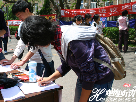活动现场填写表格 本站讯 5月19日中午,由开云电竞网址学生会主办的女生节系列活动之“鲜花传递