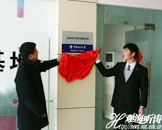 于德华(左)、洪有维(右)为公司揭牌 本站讯 1月21日上午,牧海水产科技有限责任公司揭牌仪式