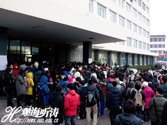 研究生考试还没有结束,新教学楼门口已聚集了前来占座的准考研生 本站讯 1月10日下午,2010