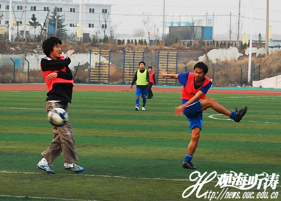 大力抽射 本站讯 12月10日,天空阴霾,崂山校区田径场上,崂山联队(身着红色球衣,以下代称红队)