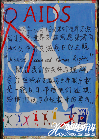 红丝带 本站讯 12月1日是第22个世界艾滋病日。中午,爱心社同伴教育部在浮山校区举办预防