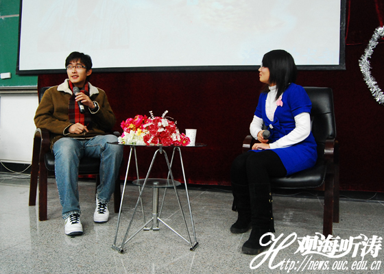 王磊向大家分享他的学习小组模式本站讯 12月3日晚6时30分,校学生会学术部主办的优秀毕业生访谈在崂