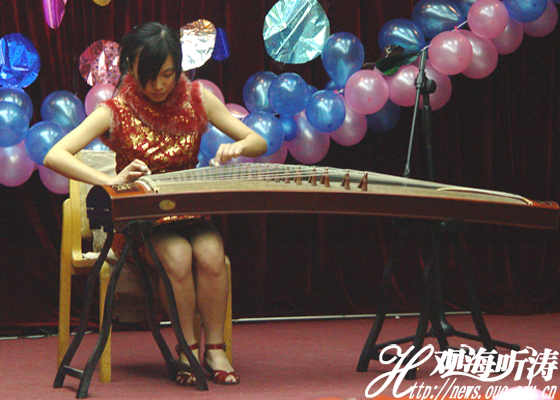 古筝独奏《彝族舞曲》 本站讯 11月28日晚,外国语学院大学生艺术团(以下简称大艺团)用