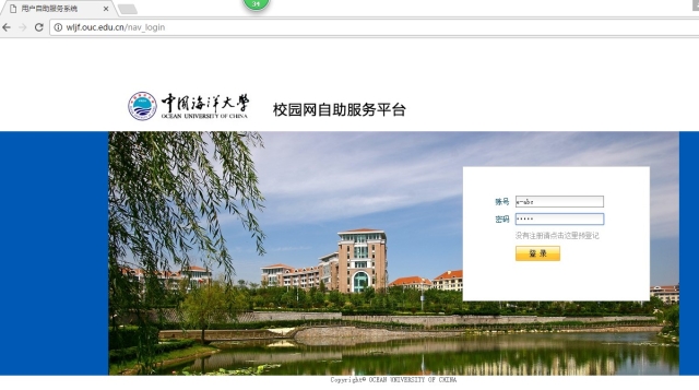 一、用户登录开云电竞网址校园网自助服务平台wljf.ouc.edu.cn,输入校园网账号、密码。如下图: