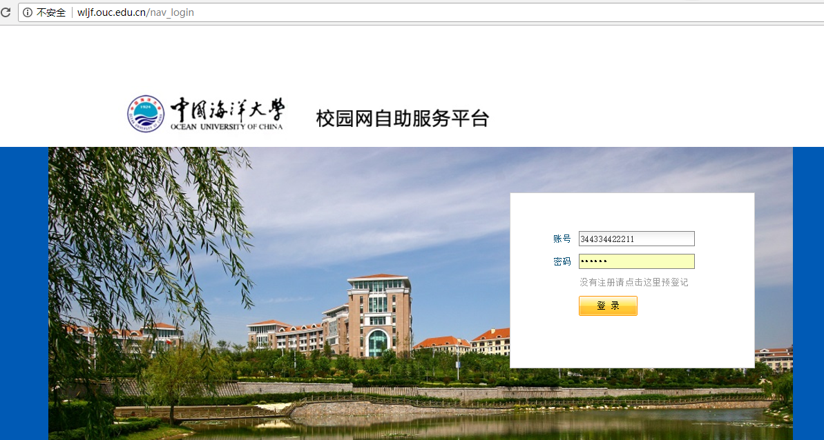 第一步:登陆http://wljf.ouc.edu.cn,输入账号名、密码,点击“登录”。如下图: