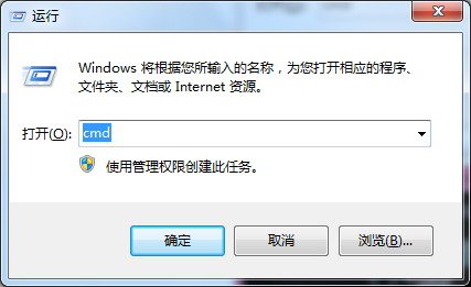 方法二:同时按住电脑键盘中的Win+R快捷键,打开运行对话框,然后在打开后面键入“cmd”,如下图: