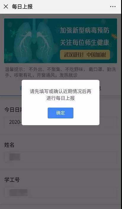 A:“每日上报”全天24小时开放,但为了确保统计数据的准确性,建议师生每日10点前完成。如果某日忘记填报,系统会发送消息推送,还请配合填写。