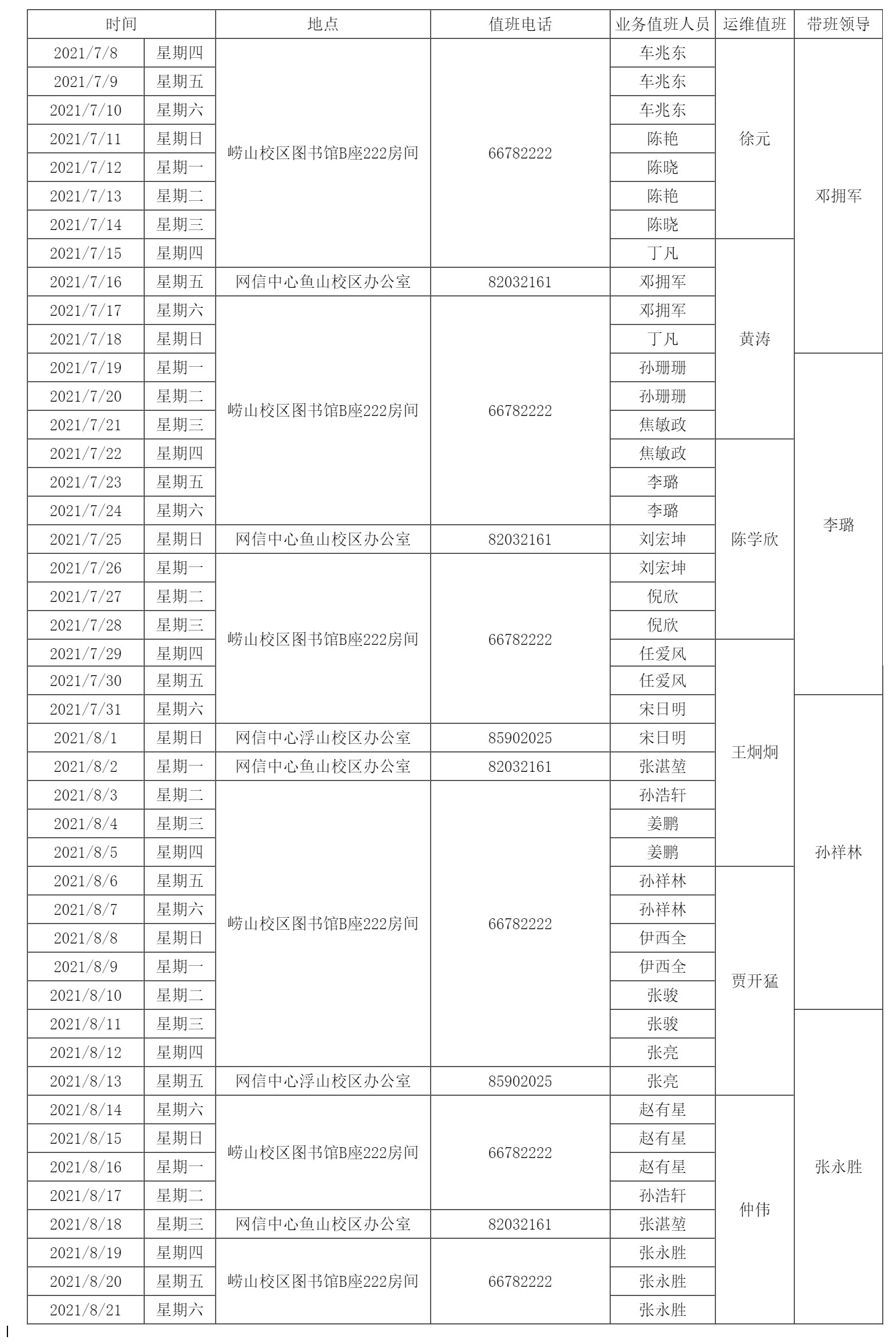 2021年8月22日网络与信息中心全体正常上班,执行假期作息时间,8月23日起恢复工作日作息时间。