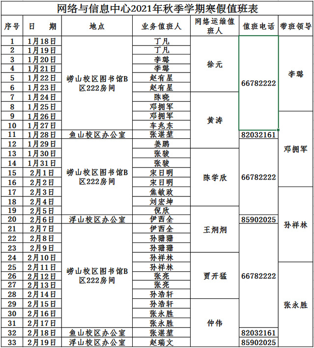 为了更好地服务广大师生,根据《关于做好2021年秋季学期寒假期间有关工作的通知》的精神,网络与信息中心寒假期间工作安排如下: